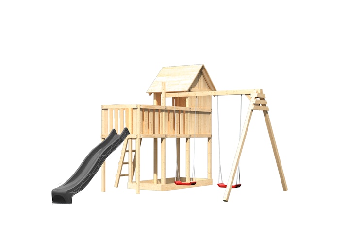 Karibu Akubi Stelzenhaus Frieda mit Wellenrutsche, Doppelschaukelanbau und Anbauplattform